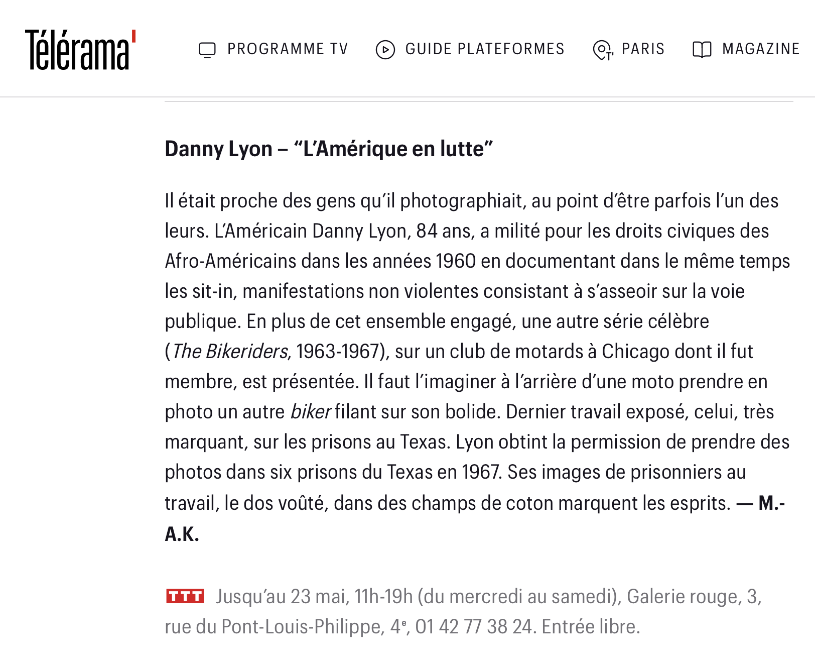 Les meilleures expositions photo à Paris en avril 2026 – Télérama